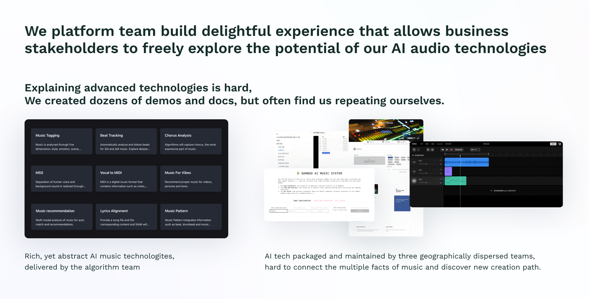 Through my work as product designer in audio technology platform team, I utilize graphics, interaction, and motion to transform AI capabilities into engaging sound experience.